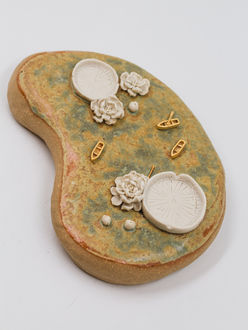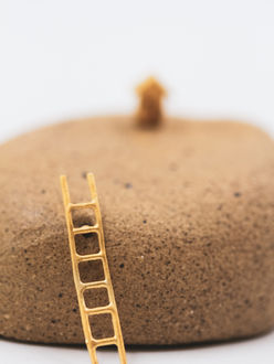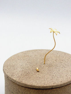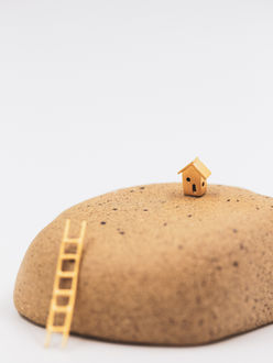 Série produzida manualmente em madeira, cerâmica e latão banhado a ouro e ródio branco, feito à mão, por meio de técnicas de joalheria de bancada.