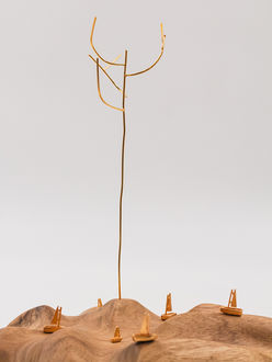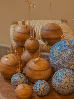 Série produzida manualmente em cerâmica de alta temperatura, madeira e metal (liga metálica de cobre e zinco) banhado a