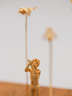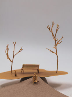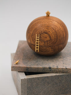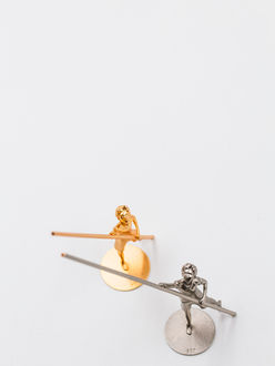 Série produzida manualmente em madeira, latão banhado a ouro e ródio branco, feito à mão, por meio de técnicas de joalheria de bancada.