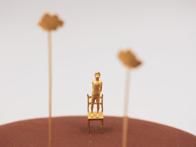 Series handcrafted in high temperature ceramics and gold-plated metal (an alloy of copper and zinc), constructed using traditional jewelry bench techniques
